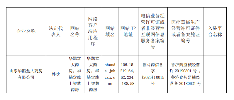 | 文章内容: | 天桥区医疗器械网络销售备案信息公示(第2025039号) | 文件编号: | |
