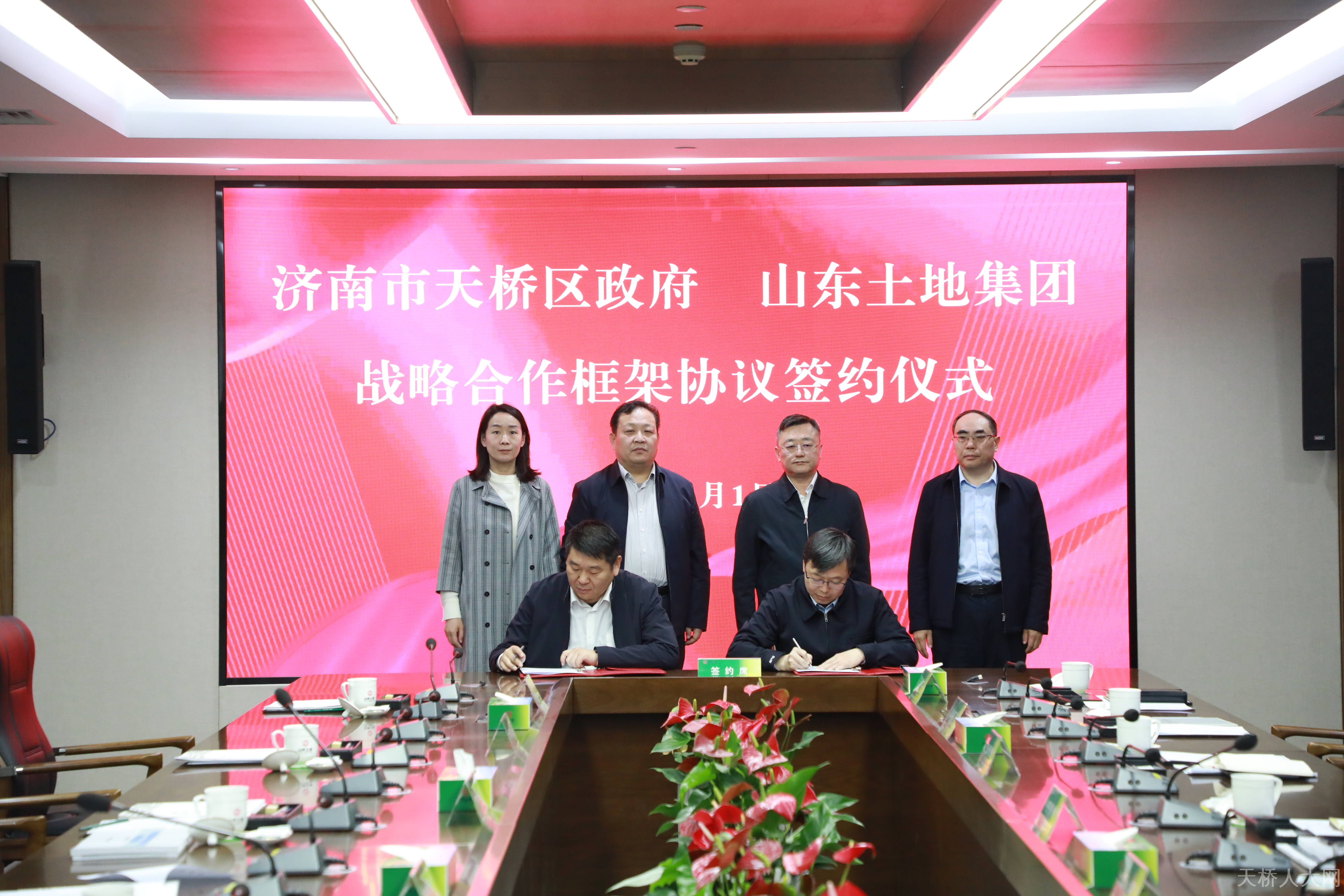 随后,天桥区政府、山东土地集团共同签署了《战略合作框架协议》;天桥资管集团、山东土地资产运营集团共同签署了《框架合作协议》。