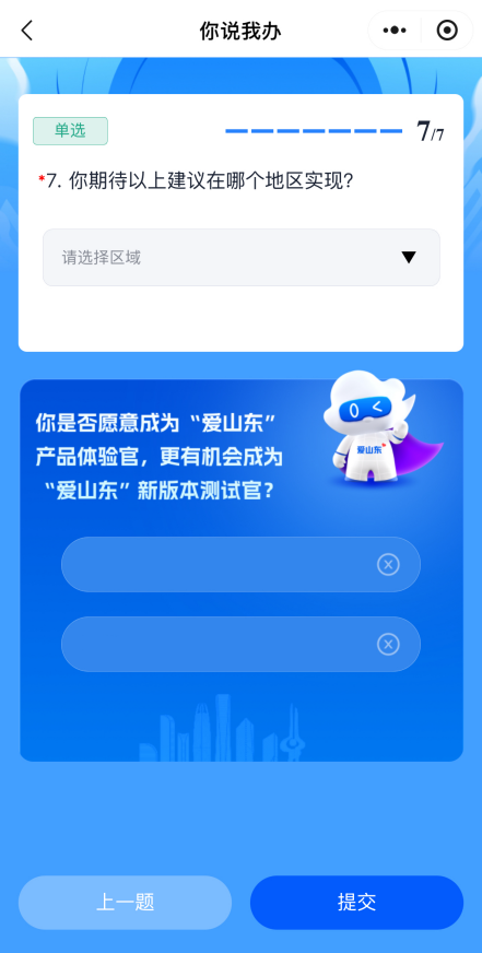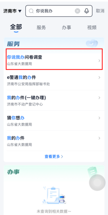 1. 打开“爱山东”APP、微信、支付宝小程序,首页搜索“你说我办”,点击进入活动页面。