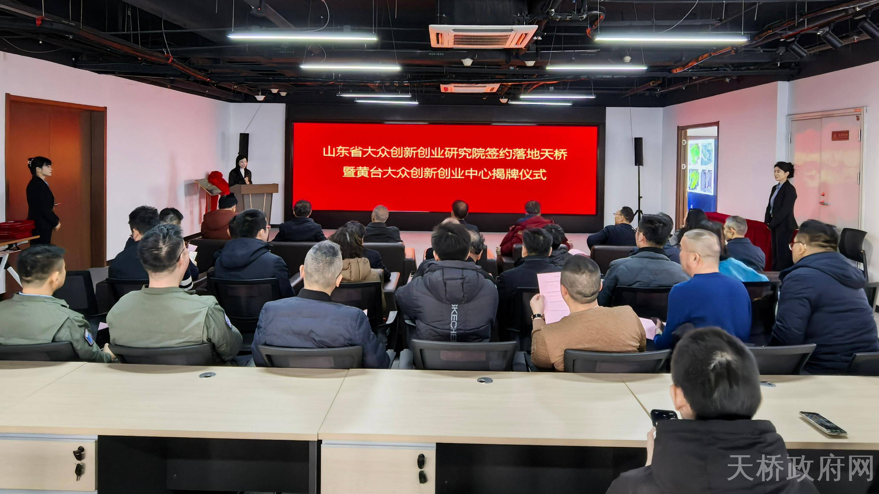 1月25日上午,山东省大众创新创业研究院签约落地暨黄台大众创新创业中心揭牌仪式在天桥区举行,山东省大众创新创业研究院创始院长李树印、王庆新、董广驰,山东大学博士生导师、山东省大众创新创业研究院院长黄治中,区委副书记、区长胡民安,副区长焦霄黎出席活动。