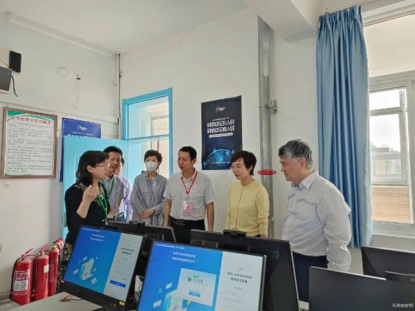 首先,天桥区教育督导室陈乐宁汇报了我区国家义务教育质量监测及专项数据采集工作具体实施、区级培训、测试文具发放、样本校落实等情况。随后,一行人通过实地查看测试场地、听取校长汇报等形式,了解样本校质量监测组织实施、开展监测操作培训、校长与教师网络填答、学生填答模拟练习等情况,逐一查看测试现场办公室、纸笔测试室、计算机测试室、教师问卷填答室、保密室等场地的准备情况。