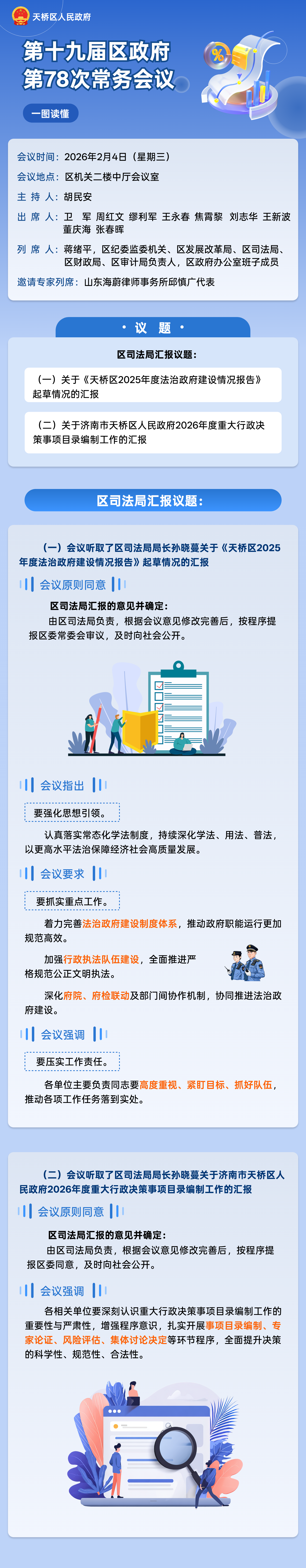 (一)会议听取了区司法局局长孙晓蔓关于《天桥区2025年度法治政府建设情况报告》起草情况的汇报
